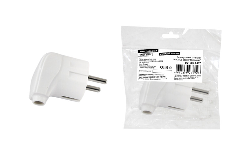TDM Вилка угловая с/з белая 16А 250В серии "Народная"