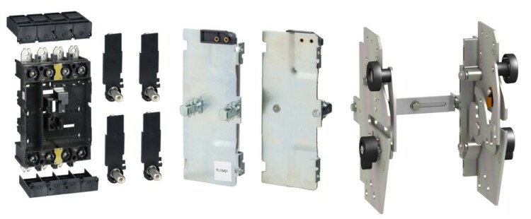 Комлект позволяет преобразовать выклача тель SystemePact CCB из стационарного исполнения в выкатное, что позволяет быстро извлекать автомат из основания отключая его от силовых присоединений. Быстрое извлечение значительно ускоряет процесс обслуживания выключателя и отходящей линии. Автомат извлекают для создания видимого разрыва при обслуживании линии, быстрой замены или осмотра автоматического выключателя (ранее Schneider Electric LV429290).