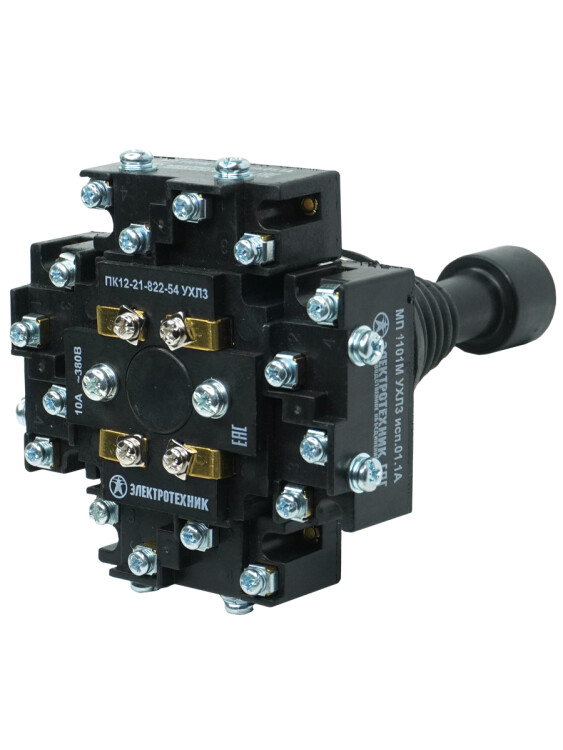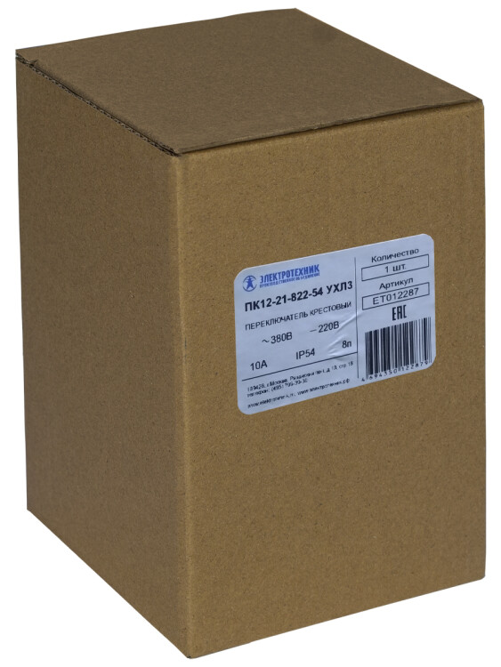 Электротехник ПК12-21-822-54 УХЛ3, 380В/50Гц, 10А, без защиты от попадания стружки, рукоятка - 8 полюсов с пятью фиксирующими положениями, толкатель - 2 полюса, IP54, переключатель крестовой (ЭТ)