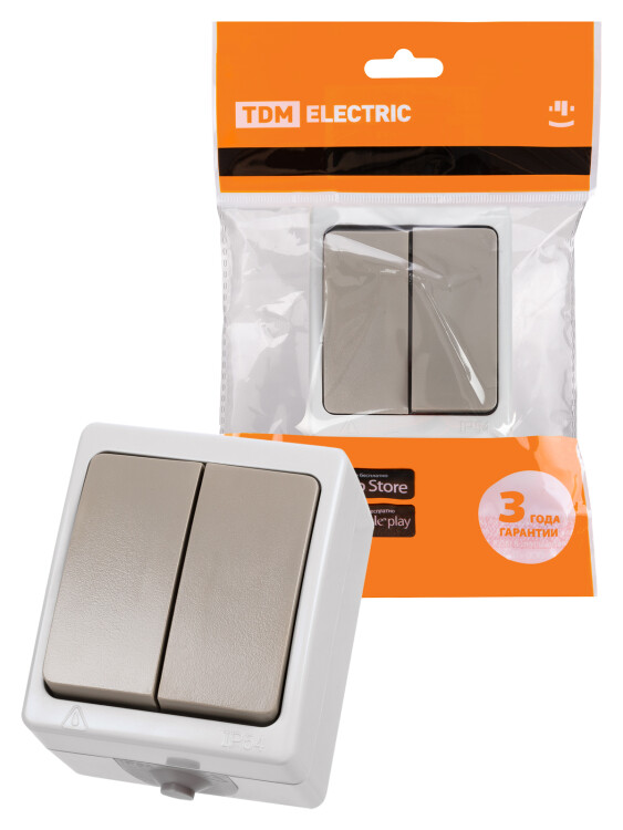 Применение:Бытовые помещения с повышенной влажностью (ванные, санузлы и т.д.).Производственные помещения (мастерские, цеха и т.д.)Наружная установка вне помещений. Материалы:Корпус устройств выполнен из самозатухающего АБС-пластика и обеспечивающего прочность, термостойкость изделий и устойчивость к воздействию солнечных лучей.Контакты розеток выполнены из высокоупругой фосфористой бронзы, обеспечивающей надежный контакт и пожаробезопасность на протяжении всего срока службы изделий.Металлокерамические (AgNi) контакты выключателей, получаемые методом спекания смеси их порошков, позволяют сочетать высокую дугостойкость с хорошей проводимостьюВинты и пружины откидной крышки выполнены из нержавеющей стали.Преимущества:Быстрозажимные клеммы механизма позволяют автоматически регулировать усилие прижима проводника, не позволяя ему просаживаться.Герметичные съемные вводы с двух сторон дают возможность подключения как сверху, так и снизу.Заглубленные пазы для крепления изделия к поверхности обеспечивают класс изоляции II.К каждому изделию в яркой индивидуальной упаковке со стикером, на который нанесена вся необходимая информация о изделии и штрихкод EAN-13, прилагается паспорт с подробной инструкцией по монтажу Назначение:Подключение бытовых нагрузок к сети переменного тока и управление сетями освещения в условиях повышенной влажности и пылезагрязненности. 0: