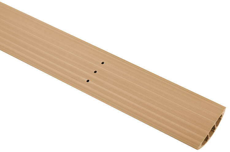 Напольные каналы применяются для открытой прокладки кабеля в условиях большой площади и открытых пространств, а также в офисах, где электропроводка проложена под полом. Их профиль имеет полукруглую форму, способствующую устойчивости кабель-каналов к нагрузкам.