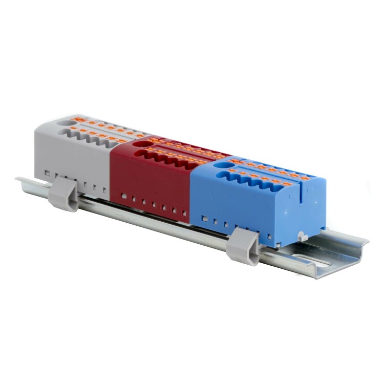 Блок распределительный с push-in зажимом предназначен для распределения потенциала на несколько точек подключения. Монтаж осуществляется на DIN-рейку шириной 15 или 35 мм и на монтажную плату с помощью адаптеров. Температура эксплуатации – от -40 до +105 °C. Корпус выполнен из полиамида 6.6 с классом горючести V0 UL-94. Цвет – синий, 1 ввод с номинальным сечением 6 мм2, 10 точек подключения с номинальным сечением проводников 2,5 мм2. Габариты (В×Ш×Г) – 21,7×36,1×28,8 мм.