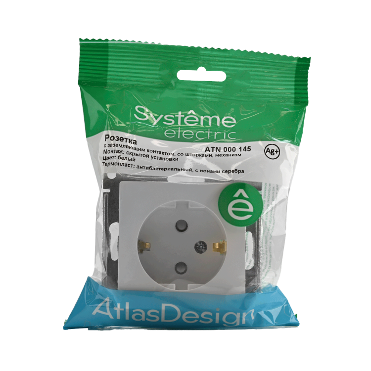 Механизм Systeme Electric (ранее Schneider Electric) серии AtlasDesign в цвете белый розетки одинарной с заземлением и шторками подходит для сетей 250 В, на ток 16 А. Пластик с ионами серебра в белом цвете обеспечивает антибактериальный эффект. Заземляющий контакт обеспечивает дополнительную защиту от удара электрическим током. При наличии заземления электрический потенциал уходит в землю, защищая человека. Лицевые детали из качественного ABS-пластика, устойчивого к царапинам и УФ-излучению. (ранее Schneider Electric ЭУИ UNICA, ЭУИ UNICA NEW MGU5.037.18ZD, NU503718)