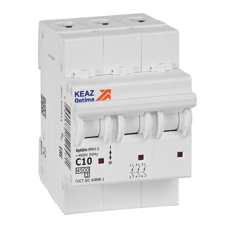 КЭАЗ OptiDin BM63 Автоматический выключатель 3P 10А C 4,5кА AC (BM63-3C10-4,5-УХЛ3).
