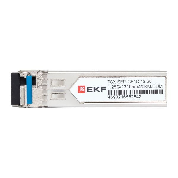 Оптический трансивер TSX-SFP-GS1D-13-20 представляет собой съемный приемопередающий оптический модуль в форм-факторе SFP (Small Form-factor Pluggable), используется для организации каналов связи по протоколам STM-8/OC-24, GigabitEthernet, 1G FiberChannel номинальная скорость передачи данных составляет 1,25 Гбит/с.