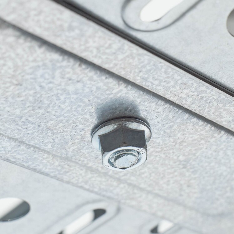 Гайка с насечкой, препятствующей откручиванию, применяется для соединения между собой кабельных лотков и крепления лотков к монтажным аксессуарам.