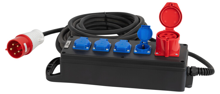 Промышленный удлинитель ЭРА IND380-U-5e-5x2,5-10m-IP44 на каучуковой колодке предназначен для работы на производстве, для подключения приборов к электрической сети переменного тока напряжением 380В.