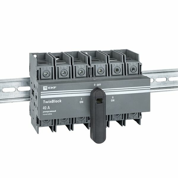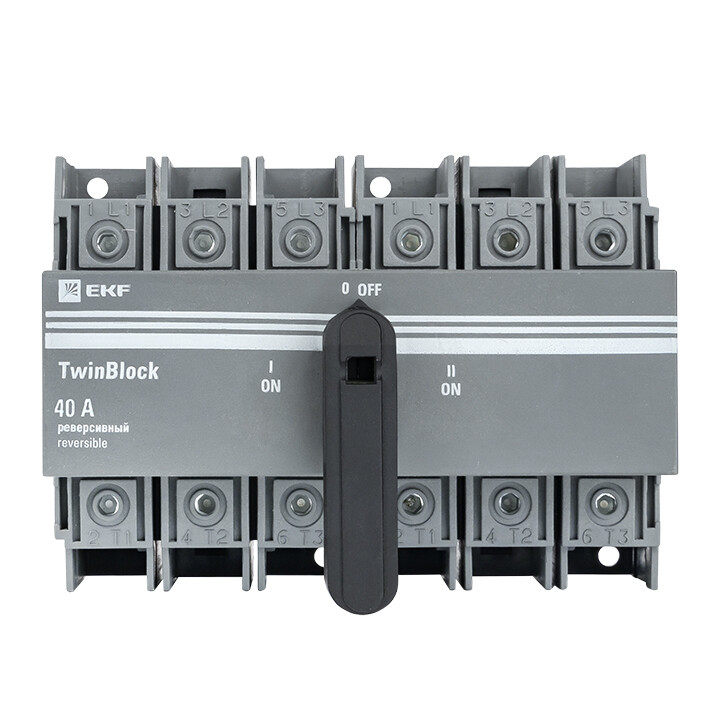 Рубильники серии TwinBlock предназначены для пропускания номинальных токов, включения и отключения электрических цепей номинальным напряжением до 690 В переменного тока частотой 50 и 60 Гц в устройствах распределения электрической энергии. Выключатели-разъединители серии TwinBlock (модели 40-800 А) имеют возможность подключения дополнительного четвертого полюса. Реверсивные рубильники серии TwinBlock предназначены для переключения нагрузки на резервную линию с разрывом питания (индикация положений на рубильнике I-0-II). Электрические характеристики реверсивных рубильников серии TwinBlock позволяют выполнять переключение под нагрузкой между двумя источниками питания, даже при токах с высокой индуктивной составляющей и пусковых токах двигателей.