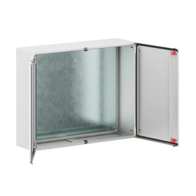Навесные корпуса серии ST предназначены для систем автоматизации и распределения электроэнергии. Корпус, фланец изготавливаются из стали толщиной 1,2 мм, дверь из стали толщиной 1,5 мм с атмосферостойким порошковым покрытием, цвет RAL7035. Монтажная плата - из оцинкованной стали толщиной 1,8 мм. Степень защиты IP55, ударопрочность IK10, сейсмостойкость 9 баллов по шкале MSK-64, климатическое исполнение УХЛ1, ОМ2, ОМ3, группа горючести Г1. Комплект поставки: корпус, дверь двустворчатая, монтажная плата с двунаправленной разметкой, дверные рейки, поворотный замок 2 шт., сплошной фланец для ввода кабеля 2 шт., комплект заземления без проводов, монтажные аксессуары. Габариты 800х1000х300 (ВхШхГ) мм.