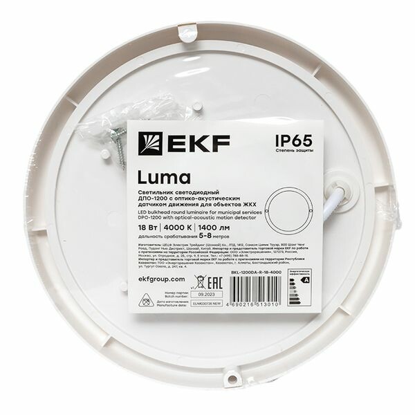 EKF Luma Светильник светодиодный ЖКХ круг ДПО-1200 с оптико-акустическим датчиком движения 18Вт 4000K IP65.