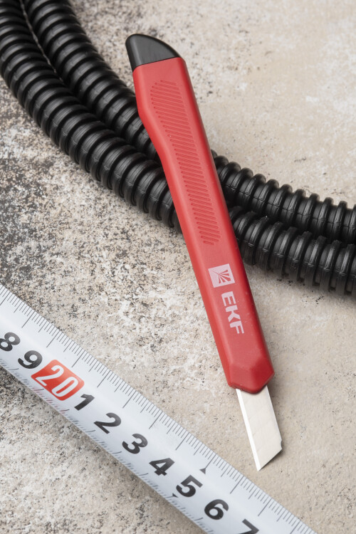 Ножи строительно-монтажные со сменными выдвижными сегментированными и трапециевидными лезвиями EKF серии MASTER и EXPERT служат для резки различных строительных материалов (линолеум, ковровые покрытия, обои, гипсолитовые плиты, гипсокартон, кровельные материалы, пластик, дерево, макетных работ). Могут применяться как в бытовых условиях, так и профессионалами. Прочный металлический корпус со вставками из резины и пластика позволяет прикладывать значительные усилия при резе. Обрезиненный корпус обеспечивает крепкий и надежный хват без опасения соскальзывания руки в зону реза. Фиксаторы различной конструкции надежно удерживают лезвие при работе с большими усилиями. Ассортимент сменных лезвий, выполненных из высокопрочной инструментальной стали долго держат заточку и сохраняют высочайшую режущую способность инструмента. Увеличенное с 7 до 14 число ломающихся сегментов лезвий удваивает ресурс инструмента.