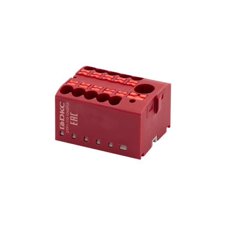 Блок распределительный с push-in зажимом предназначен для распределения потенциала на несколько точек подключения. Монтаж осуществляется на DIN-рейку шириной 15 или 35 мм и на монтажную плату с помощью адаптеров. Температура эксплуатации – от -40 до +105 °C. Корпус выполнен из полиамида 6.6 с классом горючести V0 UL-94. Цвет – красный, 1 ввод с номинальным сечением 6 мм2, 10 точек подключения с номинальным сечением проводников 2,5 мм2. Габариты (В×Ш×Г) – 21,7×36,1×28,8 мм.
