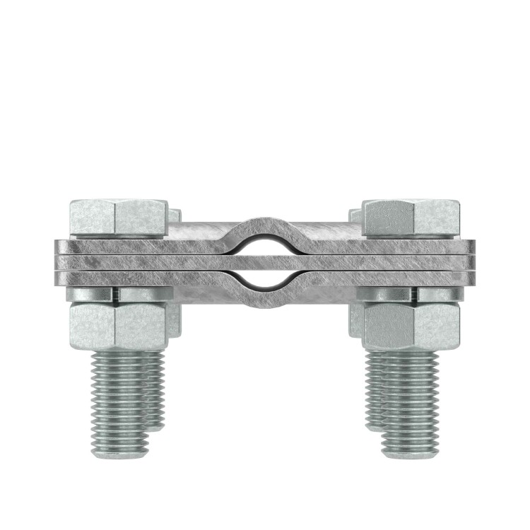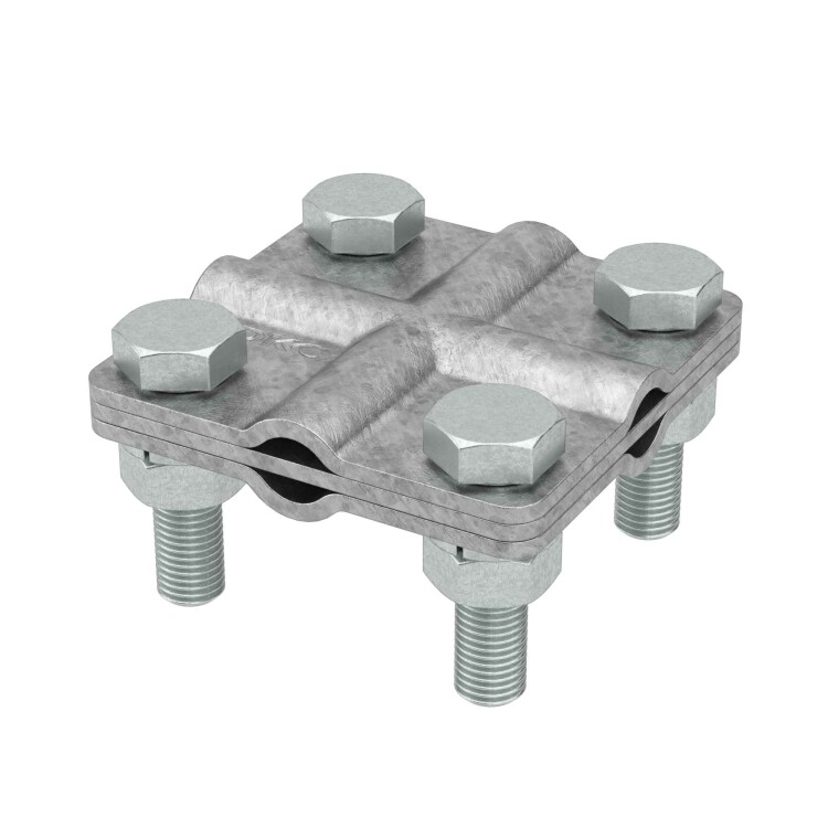 Соединитель "пруток-пруток" используется для крестообразного соединения круглых проводников диаметром 9,5-10 мм. Материал - горячеоцинкованная сталь.