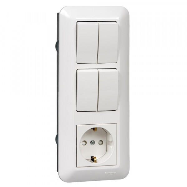 BLANCA С/У БЛОК: РОЗЕТКА с зазем.+ ВЫКЛ.2-клав.+ ВЫКЛ 2-клав, БЕЛЫЙ,розн.уп.Рос