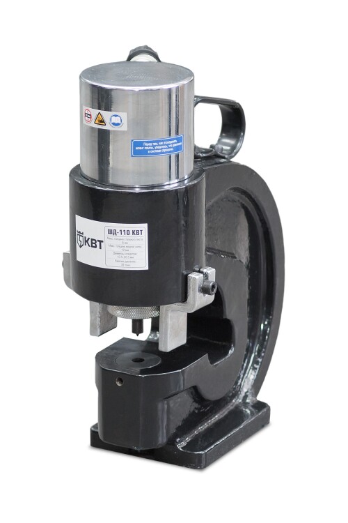 В комплекте:пресс гидравлический ШД-110 NEO.имбусовый ключ.лазерный указатель и 9 батареек AG13.ремкомплект уплотнительных колец..Диаметр пробиваемых отверстий (мм):круглые: 6.5/8.5/10.5/13.0/17.0/21.0.овальные: 6.5х10/8.5х13/10.5х17/13х20/17х22..Толщина пробиваемого материала: медная/алюминиевая шина: до 12 мм.стальной лист: до 8 мм.Максимальное усилие: 35 т.Присоединительная резьба: K 3/8 розетка.Максимальное расстояние от края шины до центра отверстия: 95 мм.Не требует предварительного высверливания центровочного отверстия.Возможность стационарного крепления пресса к рабочему столу.Вес инструмента: 35.30 кг.Габариты кейса: 440х210x380 мм.Совместимость: любые гидравлические насосы КВТ с объемом рабочей жидкости не менее 0.60 л.