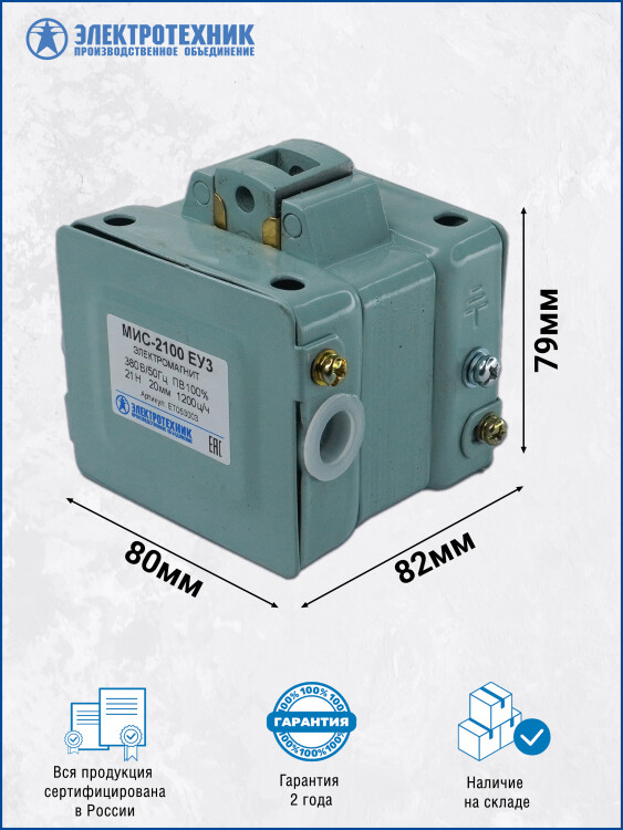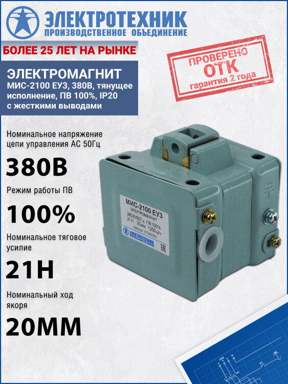 МИС-2100 ЕУ3, 380В, тянущее исполнение, ПВ 100%, IP20, с жесткими выводами, электромагнит (ЭТ)