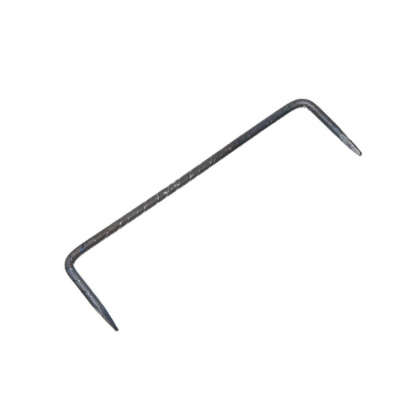 Особенности: скоба изготовлена из стальной арматуры гладкого сечения методом ковки. Устанавливается ударным методом с помощью молотка в деревянные брусья или бревна, предварительно состыкованные под требуемым углом.