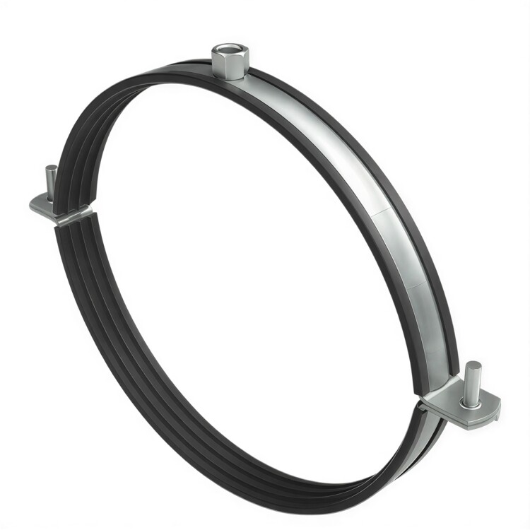 Хомут для воздуховодов с изоляцией и гайкой М8 BHV используется для монтажа воздуховодов круглого сечения. Легкая регулировка хомута по внешнему диаметру трубы за счет наличия двух винтов. Снижает уровень шума до 15 дБ в соответствии с DIN 4109. Применим для труб диаметром 125 мм.