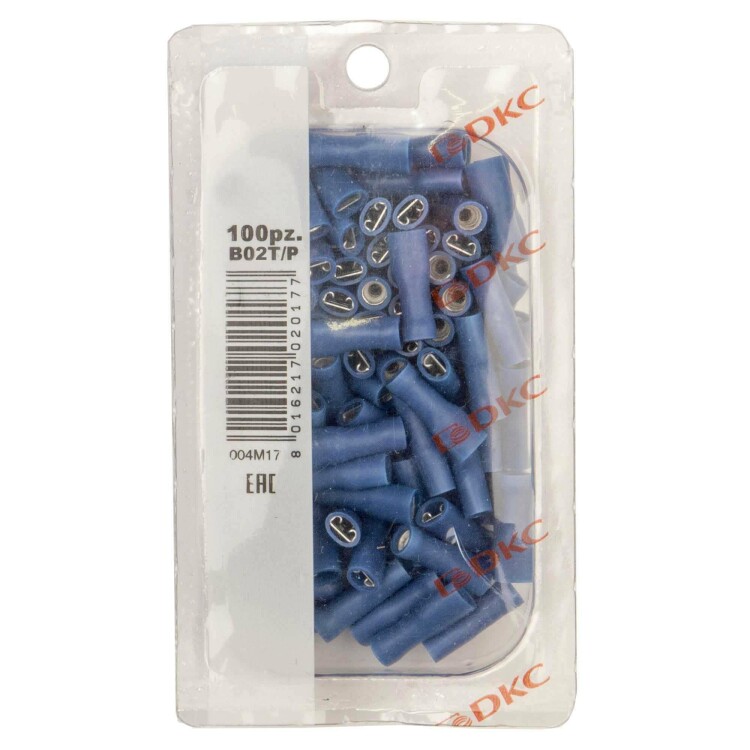 Изолированный кабельный наконечник быстрого соединения (РППИ-М) предназначен для оконцевания кабе ля в электрических цепях переменного и постоянного тока напряжением до 600 В. Материал контактной части – электротехническая медь, материал изоляции - ПВХ. Луженое покрытие обеспечивает защиту от коррозии. Класс горючести - V0 по стандарту UL 94. Сечение: 1,5-2,5 мм². Размер клеммы 6,3×0,8 мм. Длина лопатки - 7,8 мм. Форма контактной части - "мама". Цвет - синий.