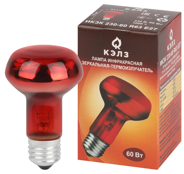 Инфракрасная лампа ЭРА ИКЗК 230-60 R63 для обогрева животных 60 Вт Е27 с красной колбой активно используется в животноводстве, птицеводстве и растениеводстве. Максимальная тепловая мощность без яркого света. Идеальна для стабилизации теплового баланса новорождённых и молодых животных. 100% энергии переходит в тепловую. Работа лампы не зависит от скачков сети, микроимпульсов. Не требуются стабилизаторы напряжения, лампа работает даже при пониженном напряжении. Мгновенно включается и нагревается. Минимум пульсаций освещения. Компактные размеры.