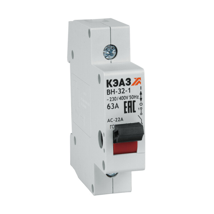 Модульный 1 полюсный выключатель нагрузки переменного тока с предельной коммутационной способностью при переменном токе на номинальный ток 32 А.