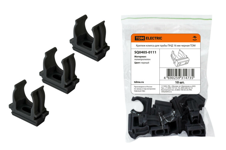 TDM Крепеж-клипса для трубы ПНД 16 мм (10 шт.) черная