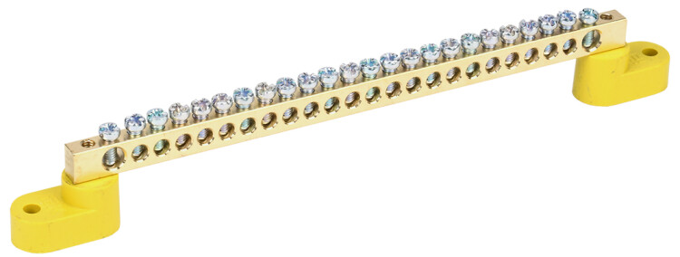 Шины с изолятором типа ШНИ предназначены для электрического и механического соединения нулевых, защитных и фазных проводников. Конструктивно шины ШНИ выполнены из латунной шины, установленной на пластиковый изолятор или в изолятор, изготовленный из самозатухающего пластика.