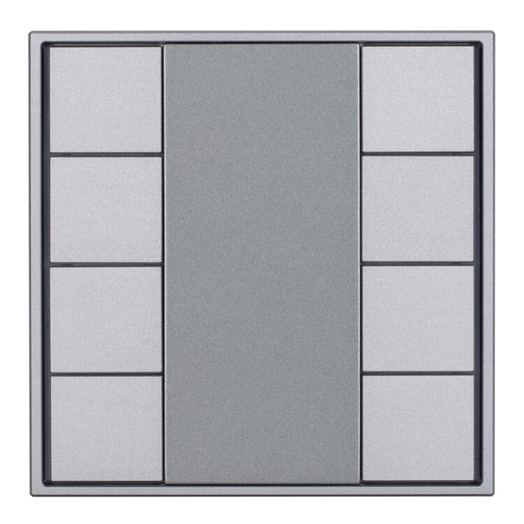 Универсальная многофункциональная встраиваемая настенная панель для систем KNX. 8 клавиш. Тонкая рамка, материал - металл. Цвет корпуса - серебристый. Питание от шины KNX DC 21-30V. Габариты 80x80x26.6 мм.