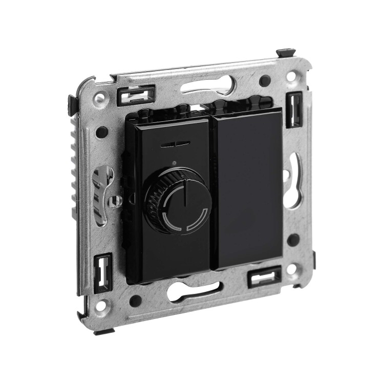 Диммеры предназначены для управления контуром освещения и регулировки интенсивности освещения помещения. Поворотный диммер – это колесико, поворот которого позволяет менять яркость комнатного освещения. Диммеры от ДКС применяется для скрытой установки в стену.
