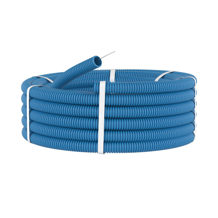 Трубы применяются для прокладки электрических, телефонных, компьютерных кабелей. Специальная протяжка, входящая в комплект, облегчает прокладку кабеля во внутреннем пространстве трубы. Диаметр трубы - 20 мм. Цвет - синий.