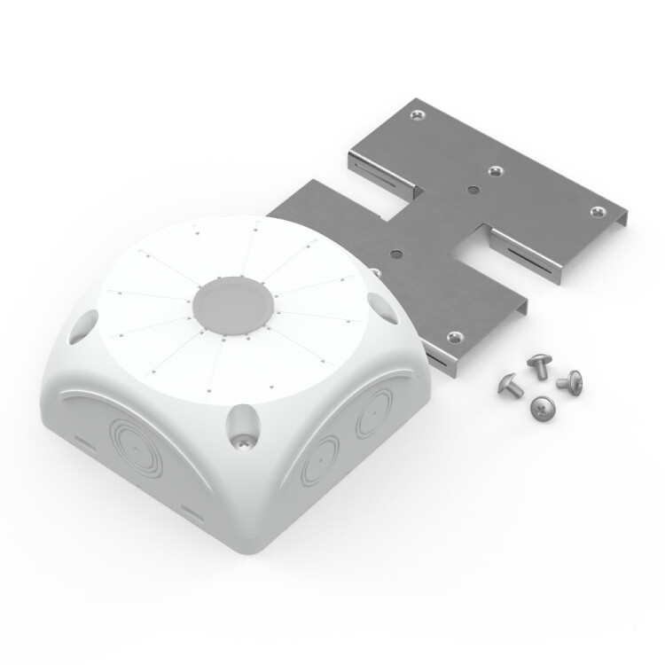 Монтажная пластина обеспечивает надежный монтаж к металлическим или железобетонным опорам при помощи металлических монтажных лент или стяжек. Винты, входящие в комплект не требуют гаек и вворачиваются в резьбовые отверстия пластины, фиксируя корпус коробки.