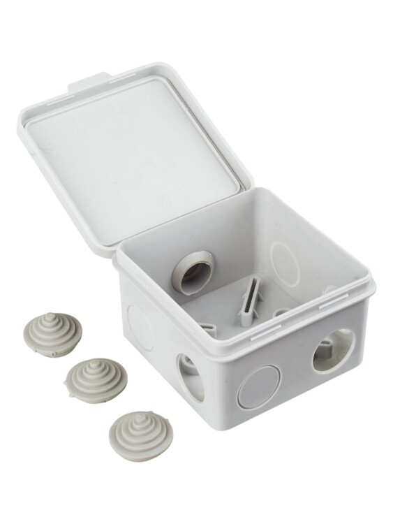 Монтажные коробки для открытого монтажа предназначены для разветвления проводов и кабелей, также для скрытия и дополнительной защиты мест коммутации. Используются как часть системы электрической канализации, состоящей из жестких и гофрированных труб. Коробки с повышенной степенью защиты могут быть использованы на открытом воздухе, а также во влажных и пыльных помещениях. Материал изготовления: полипропилен. Материал коробок является безгалогенным («HF» — halogen-free). Цвет: серый. Степень защиты: IP54. Количество вводов: 7 - D=20мм. Размер:80х80х50мм.