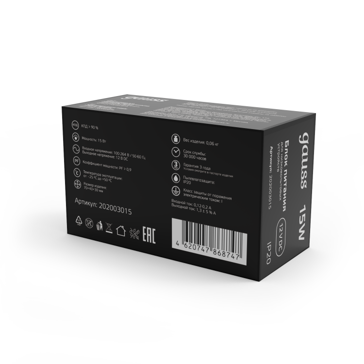 Gauss Блок питания LED STRIP PS 15W 12V 0