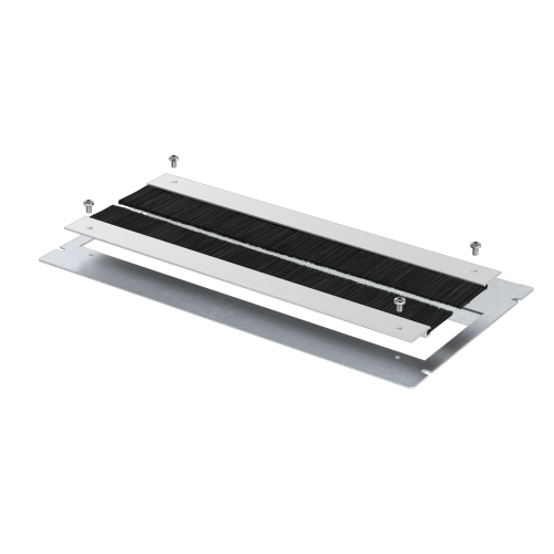 Пластина со щетками предназначена для организации ввода кабелей в корпус. Изготовлена из оцинкованной стали панель и заглушка, алюминиевого профиля и полиамидных щеток, обеспечивающих защиту оборудования от пыли. Допускает замену на сплошную панель R5FG и комбинирование с другими панелями серии в произвольном порядке. Ряд завершается заглушкой R5FZ. Комплектация и подбор кодов выполняются по таблице. Размер (ШхГ): 800×210 мм.