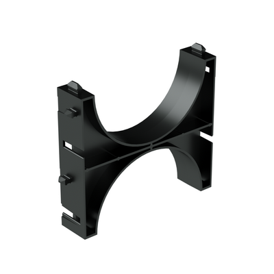 Назначение держателя расстояния (кластера) для двустенных труб - закрепление труб в определенном положении и сохранение между ними фиксированного расстояния. Кластер имеет паз для трубы диаметром 125 мм. Если необходимо, кластеры могут быть соединены между собой, чтобы разместить большее количество труб.