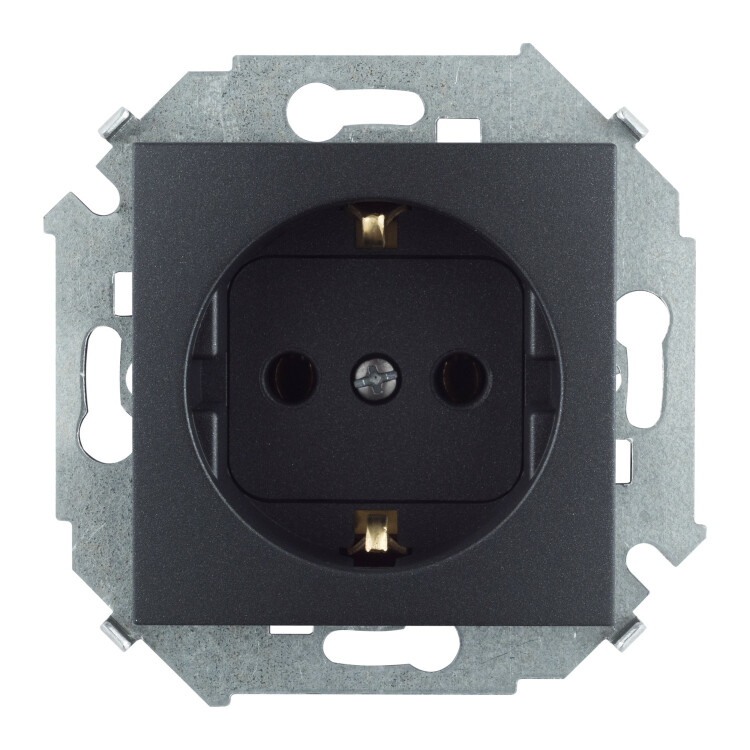 Розетка с заземлением 2P+E, с защитными шторками, 16А, 250В, винт. зажим, графит
