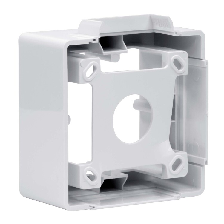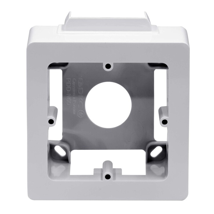 Коробка монтажная под 2 модуля электроизделий, тип PDD-N60. Назначение: организация рабочего места. Условия монтажа электроустановочных изделий: с каркасами и рамками (аналогично как в стены), посадочный размер между винтами 60 мм. Характеристики: материал – АБС-пластик; отверстия 50х20 мм с 3-х сторон для ввода мини-каналов; для монтажа к стене − отверстия на дне коробки для саморезов диаметром до 4 мм. Комплектация: основание − 1 шт.; саморезы для установки в основание коробки каркасов с ЭУИ − 2 шт.; заглушка 50х20 мм − 3 шт.; адаптер для ввода мини-канала 22х10 или 30х10 мм − 1 шт.; адаптер для ввода мини-канала 25х17 или 15х17 мм − 1 шт.; адаптер для ввода мини-канала 40х17 или 40/2х17 мм − 1 шт. Цвет белый
