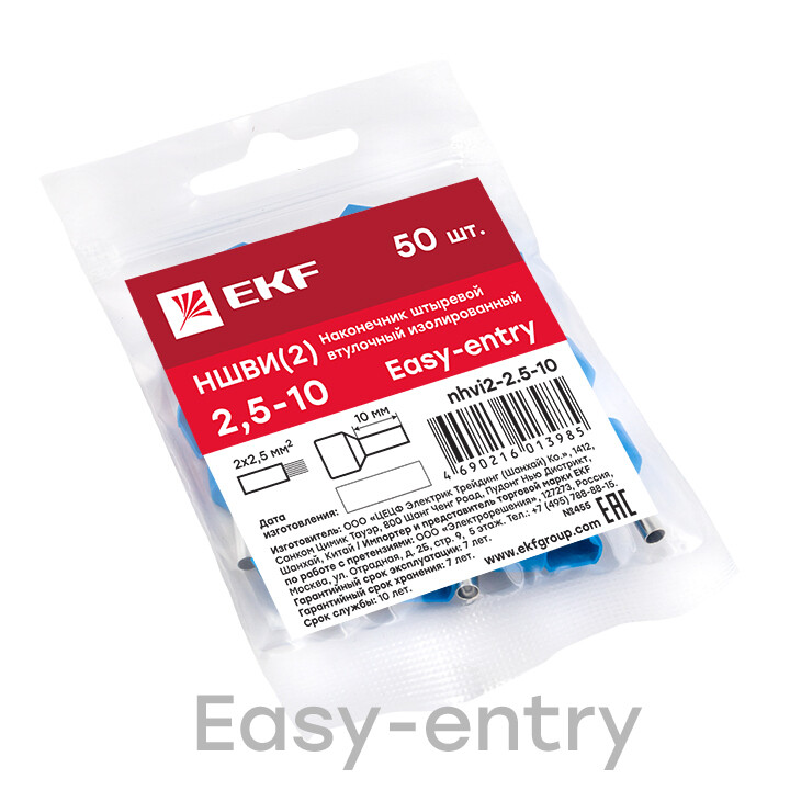 Одинарные и двойные втулочные наконечники (НШвИ и НШвИ2) EKF PROxima являются единственными специально разработанными наконечниками под опрессовку, которые полностью заменяют обязательный процесс облуживания многопроволочных медных проводов (типа ПВ-3, ПВС и т.п.) при монтаже различного электрооборудования. Втулочные наконечники состоят из медной луженой трубки, один конец которой развальцован для облегчения ввода многожильного провода и изолирующей манжеты из полипропилена.