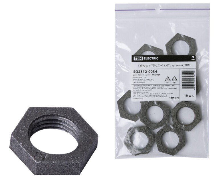 TDM Гайка для ТЭН, ДУ-15, G½, чугунная,