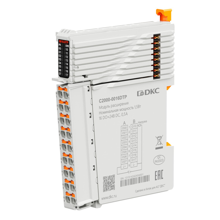 Модуль расширения ДКС C2000-0016DTP применяется совместно с ПЛК серии C2000 для расширения дискретных входов в промышленных системах автоматизации: 16 дискретных входов 24В DC (PNP). Габариты (ВхШхГ) 15.7 x100 x 80 мм. Рабочая температура -20 ... +55 ºC.