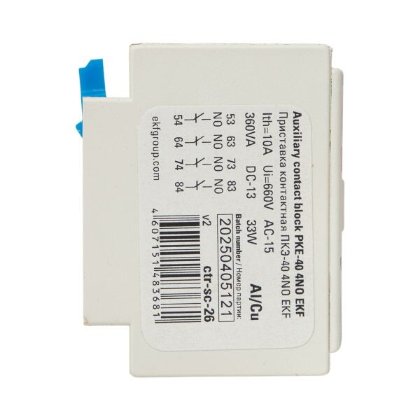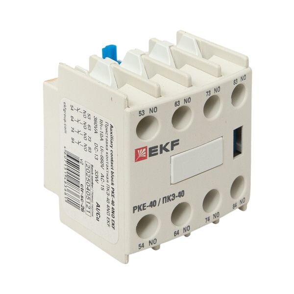 Приставки контактные предназначены для увеличения количества вспомогательных контактов контакторов КМЭ EKF PROxima и КТЭ EKF PROxima. На каждый из контакторов можно установить 2- или 4-контактную приставку с различным набором размыкающих и замыкающих контактов. Контактные приставки механически соединяются с контакторами и фиксируются при помощи защелки.