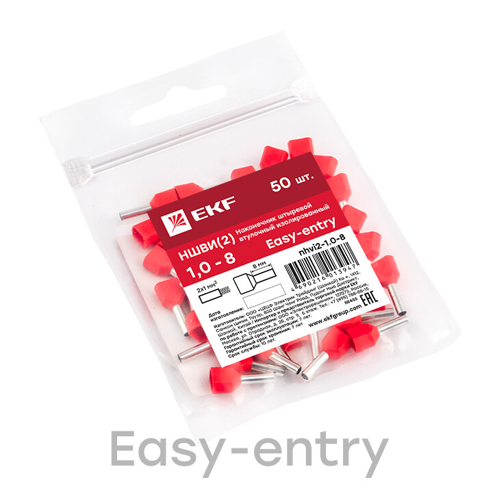 Одинарные и двойные втулочные наконечники (НШвИ и НШвИ2) EKF PROxima являются единственными специально разработанными наконечниками под опрессовку, которые полностью заменяют обязательный процесс облуживания многопроволочных медных проводов (типа ПВ-3, ПВС и т.п.) при монтаже различного электрооборудования. Втулочные наконечники состоят из медной луженой трубки, один конец которой развальцован для облегчения ввода многожильного провода и изолирующей манжеты из полипропилена.