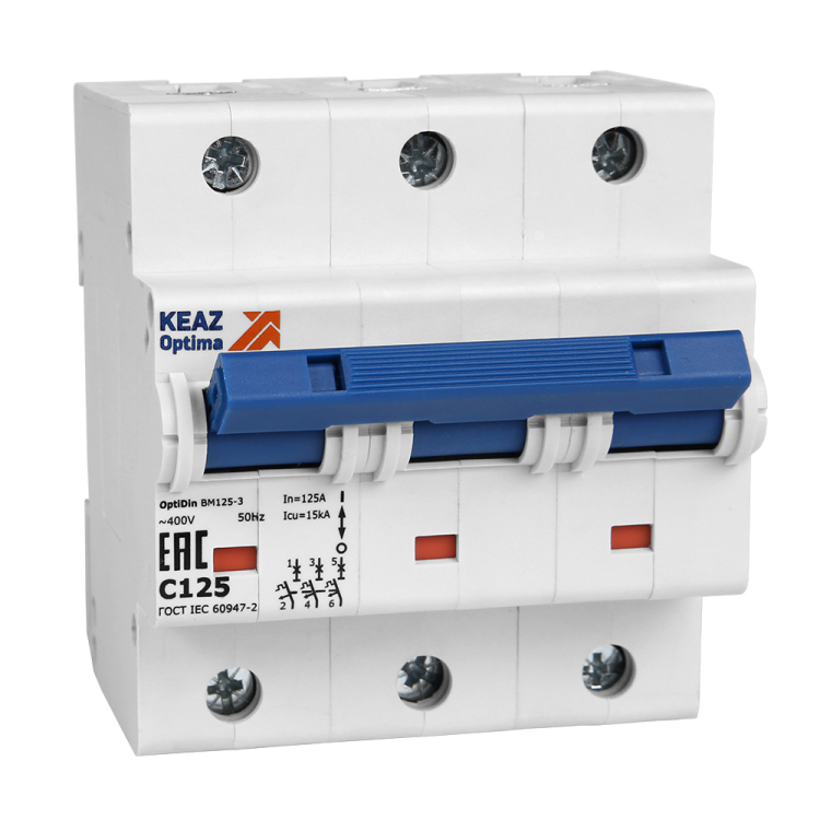 Модульный автоматический 3 полюс ный выключатель переменного тока с предельной коммутационной способностью при переменном токе 20 кА на номинальный ток 80 А .