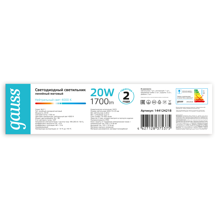 Светильник светодиодный матовый Gauss WLF-1 с уровнем защиты IP20 и мощностью 20w изготовлен специально для освещения помещений с низкими требованиями к пылевлагозащите и высокими к уровню освещения. Яркие светодиоды Sаnan имеют сверхяркий LED свет и высокий КПД и отлично подходят для жилых и и коммерческих помещений. В квартире или доме они прекрасно впишутся в ин терьер коридора, будут яркой подсветкой рабочей зоны кухни, отлично осветят гардеробную. В коммерческих и общественных заведениях они будут уместны в офисах, магазинах, коридорах, сухих складах.