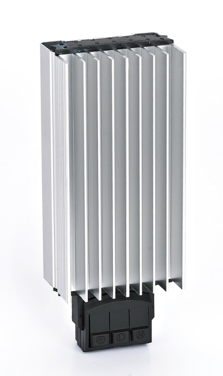 Резистивный нагреватель Dekraft. Мощность нагрева - 150 Вт. Напряжение питающей сети - 110 - 250 В АС. Монтаж на DIN-рейку, предназначен для поддержания оптимальной температуры воздуха внутри электротехнических шкафов. Он создает конвекционный поток воздуха, который предотвращает образование зон с низкой температурой. Также он защищает электрические компоненты от образов ания конденсата и замерзания при перепадах температуры, а также от коррозии металлических элементов активного оборудования.