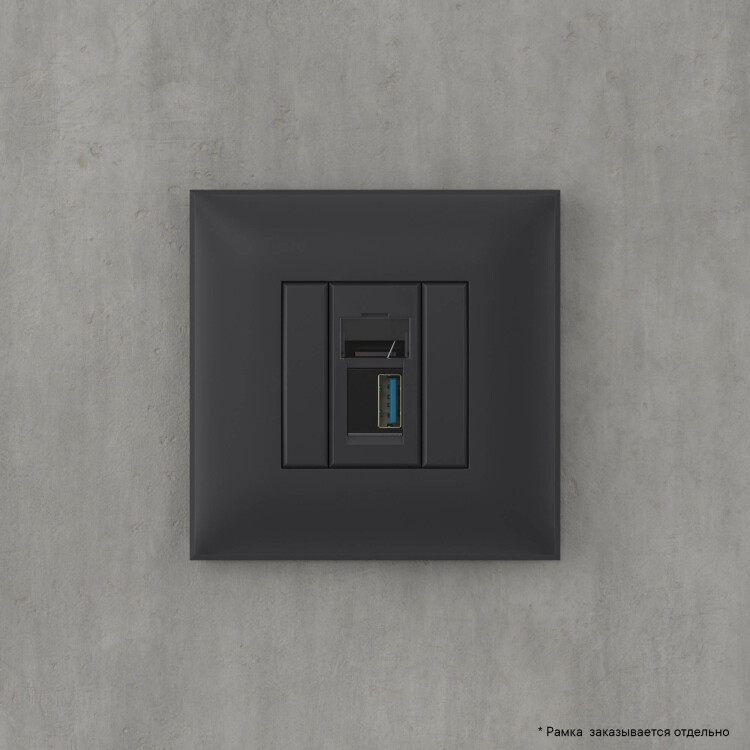 USB 3.0 ро зетка. Назначение: для монтажа в подрозеточные коробки глубиной не менее 45 мм (код 59301). Используется в качестве информационной розетки для передачи сигнала (подключение проекторов, мониторов и др.). 2 модуля. Цвет: "Черный матовый". Производитель оставляет за собой право вносить во внешний вид изделия изменения, которые не влияют на его функционал, безопасность и надежность.