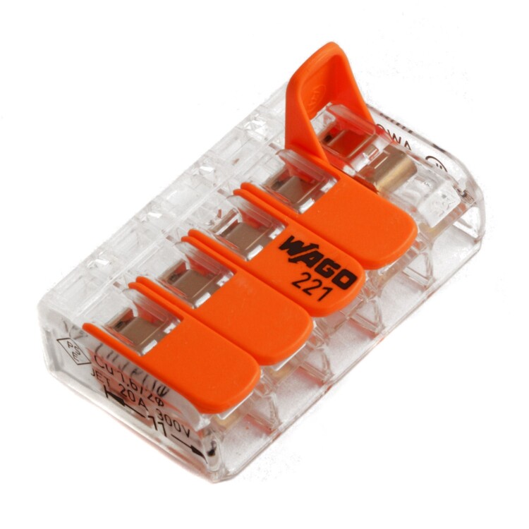 Wago Клемма с рычагами компактная для 5-и медных(!) одно-/многопровол. проводников сеч. до 4 мм кв.