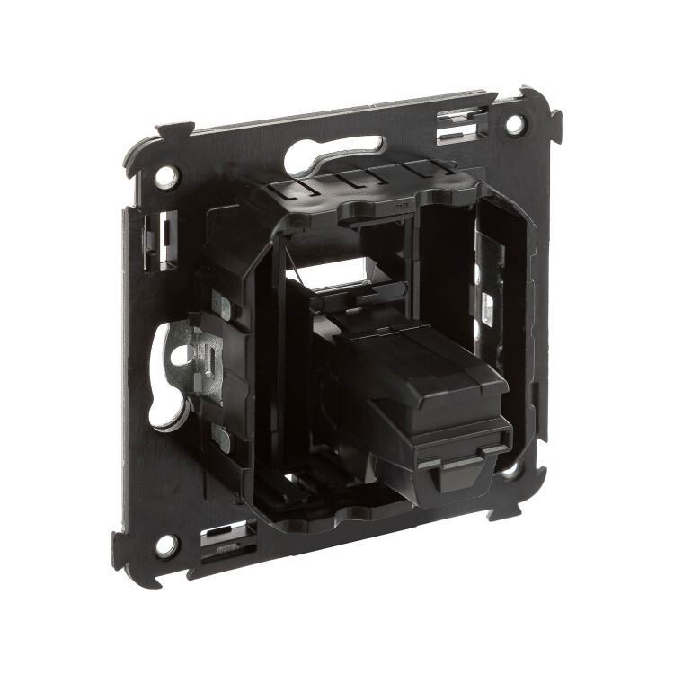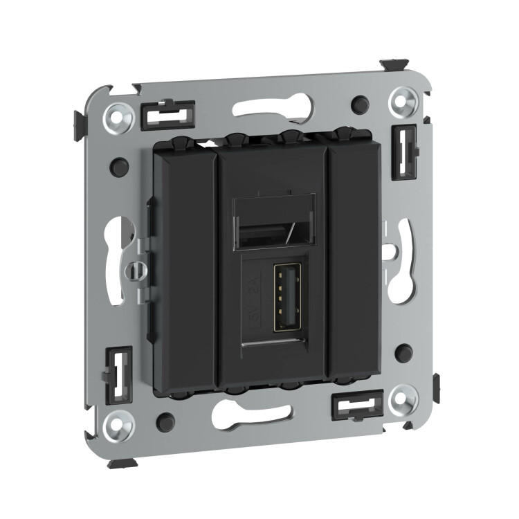 USB 2.0 ро зетка. Назначение: для монтажа в подрозеточные коробки глубиной не менее 45 мм (код 59301). Используется в качестве информационной розетки для передачи сигнала (подключение проекторов, мониторов и др.). 2 модуля. Цвет: "Черный матовый". Производитель оставляет за собой право вносить во внешний вид изделия изменения, которые не влияют на его функционал, безопасность и надежность.