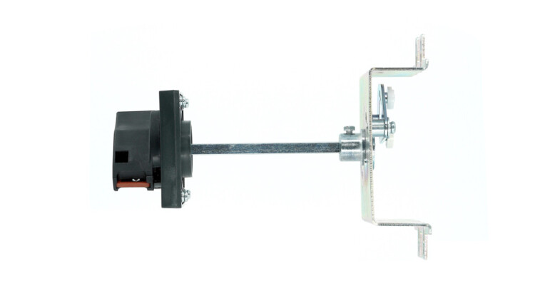 Ручка поворотная на дверь шкафа РП-303; состоит из ручки, удлинительной оси и поворотной рукоятки; предназначена для ручного дистанционного переключения (включения и отключения) автоматического выключателя серии ВА-303 без открытия двери шкафа.