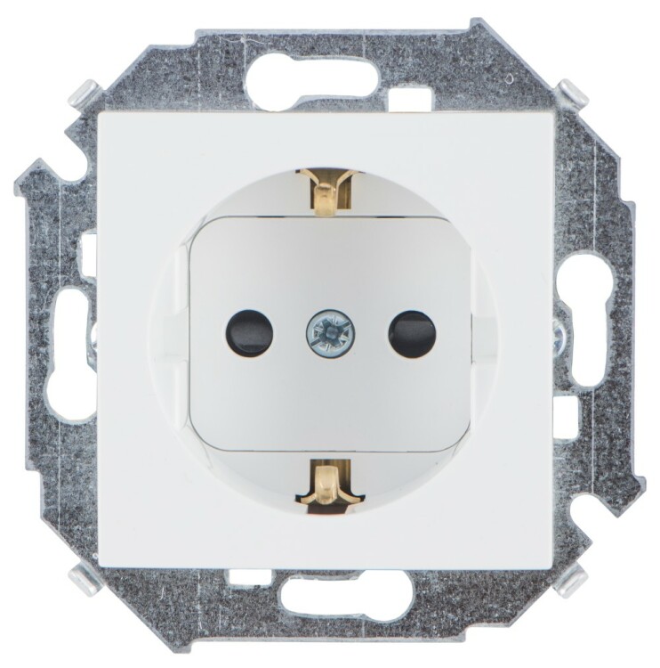 Simon 15 Белая Розетка с/з, со шторками, 16А, 250В, винтовой зажим